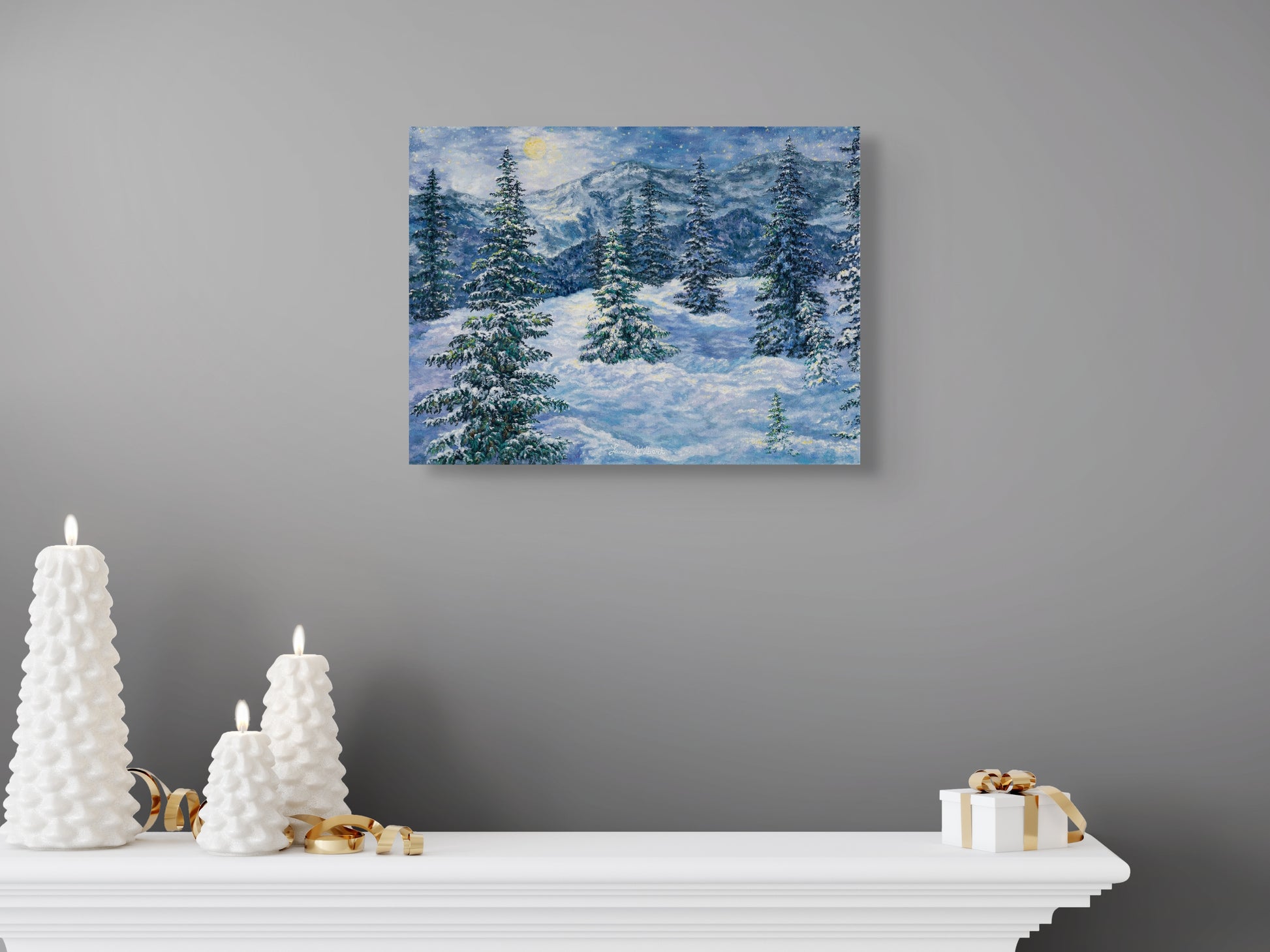 Giclée prints on gloss-coated canvas wrapped around 3/4” backing frame